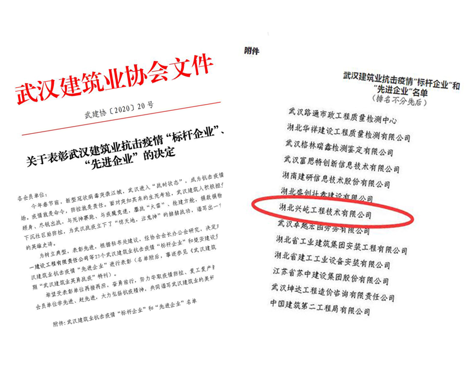 4月14日,武漢建筑業(yè)協(xié)會(huì)表彰了建筑業(yè)抗擊疫情“標(biāo)桿企業(yè)”、“先進(jìn)企業(yè)”,